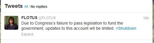 Apparently the furlough took out Michelle Obama’s social media person. Her last tweet declares updates will be limited during the shutdown.